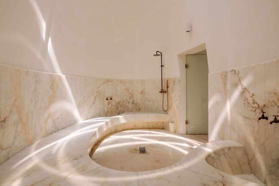 Atualmente, são 2000 m2 de área coberta, que integra a Casa Grande, com sete quartos, três casas duplex, e uma de piso térreo, no total de 15 quartos, várias áreas comuns, uma Cork Box – a antiga garagem da máquina debulhadora, totalmente forrada a cortiça, constitui o mais impressivo espaço para a prática de Yoga, Pilates ou outras performances pelo conforto acústico e táctil. E um Hamam, o primeiro feito de raiz, do Portugal contemporâneo e de uso privado, para o máximo de quatro pessoas, forrado com mármore de Estremoz.