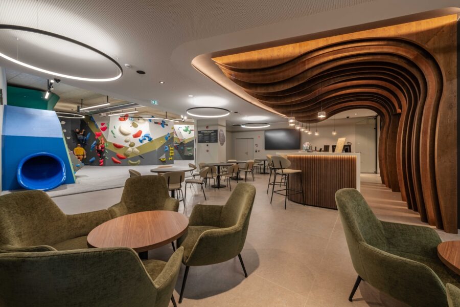A joia da coroa está no piso subterrâneo: o Climbing Center oferece um completo ginásio de escalada e boulder, bem como uma parede de uns impressionantes 27 metros que se estende por toda a altura do edifício. Em qualquer andar do hotel é possível observar esta parede, com apenas um vidro a separar os hóspedes de quem se atrever a escalá-la.