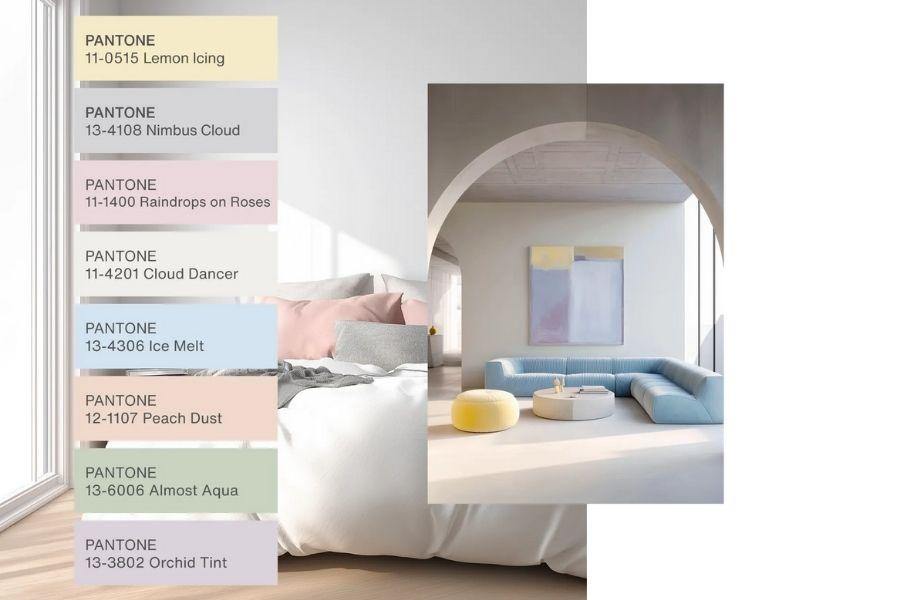 Mas a cor do ano nunca se faz apenas de um tom, e a palete de 2026 caracteriza-se pelos tons pastel e neutros que combinam com a Cloud Dancer, oferecendo mudanças subtis de tonalidade que são matizadas, agradáveis e discretas. O mote está no prazer subtil, sem exageros ou sobressaturação.