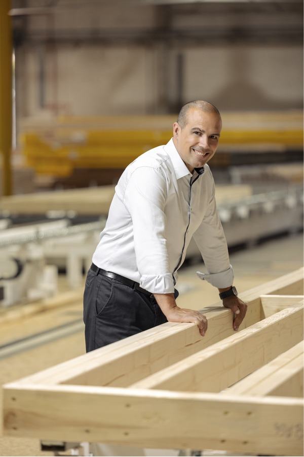 Hoje, já existem edifícios com 20 pisos, construídos em estrutura CLT. Em meados de 2022, a Vanguard entrou como sócia da empresa e foi quando instalamos a linha de cross-laminated timber. Hoje, na Península Ibérica, somos a empresa mais tecnológica do setor, na produção industrial em escala off-site, em sistemas sustentáveis, com estruturas em madeira.
