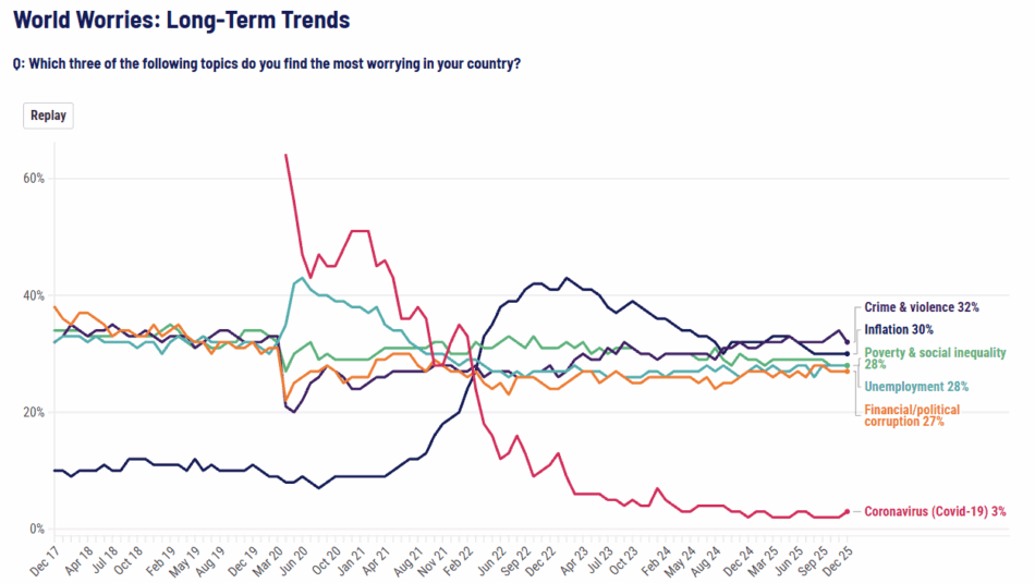 Mais do que crises pontuais, os dados revelam um mal-estar estrutural, em que economia, segurança e coesão social se cruzam como desafios centrais para governos e líderes em 2026.