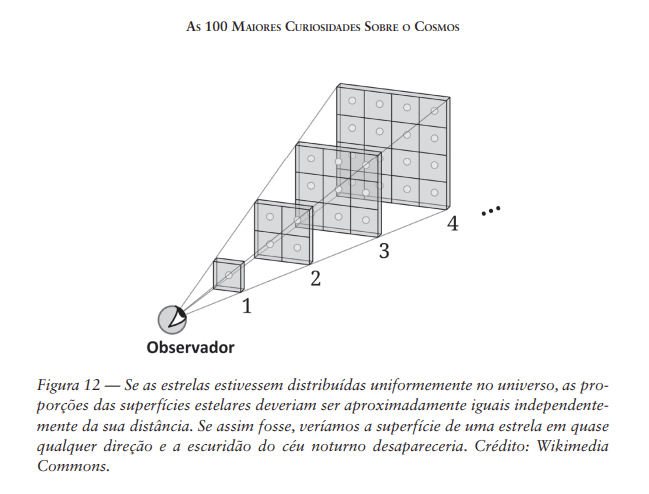Isto criava um problema claro: se o Universo e o número de estrelas era infinito, para onde quer que olhássemos, iríamos sempre ver uma estrela. Seria impossível haver um pedaço de céu escuro.