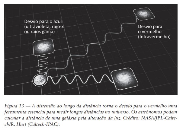 Nos anos 20, Hubble descobriu que o comprimento da onda da luz de estrelas e galáxias distantes estica ao longo do tempo, convertendo-se em infravermelhos. A este fenómeno chama-se red shift, que em português se designa como «desvio para o vermelho»: quanto mais distante for a origem da luz, ou quanto mais essa origem se afastar de nós, mais ténue se tornará a luz, convertendo-se assim em infravermelhos, mantendo a aparência avermelhada até a deixarmos de conseguir ver, porque os nossos olhos não são sensíveis a este espectro da luz.